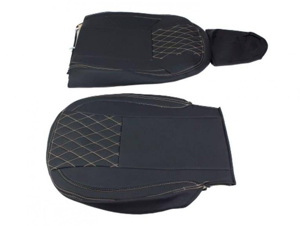تلبيسة مراتب جلد للسيارة رصاصي مطرز بلون بيج ام او بي من اكسسوارات سيارات داخلية، تم تصميم التلبيسة لتضفي على مقاعد سيارتك مظهرًا أنيقًا يجمع بين الفخامة والتميز، مع حماية المقاعد الأصلية من الخدوش و البقع والتآكل.